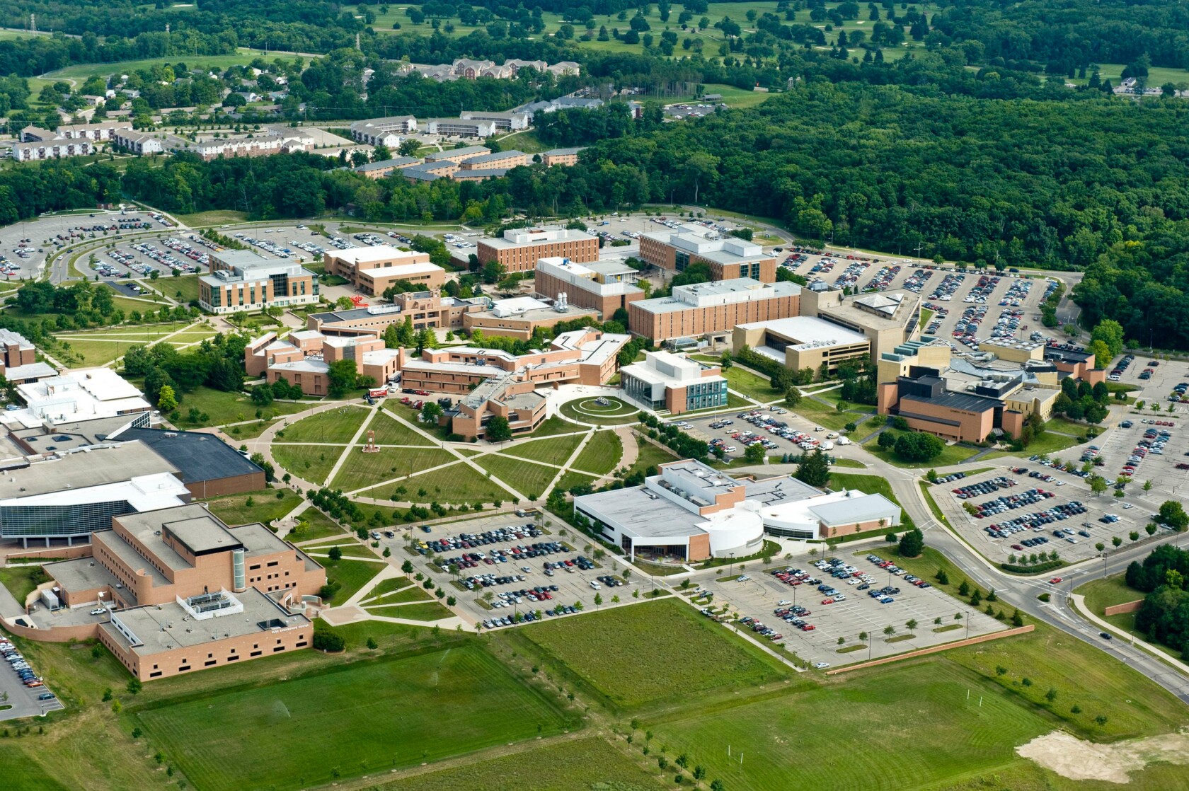 "Sprawling Ohio public university excelling in fashion design, flight training, and liquid crystal technology amid a lively suburban campus."