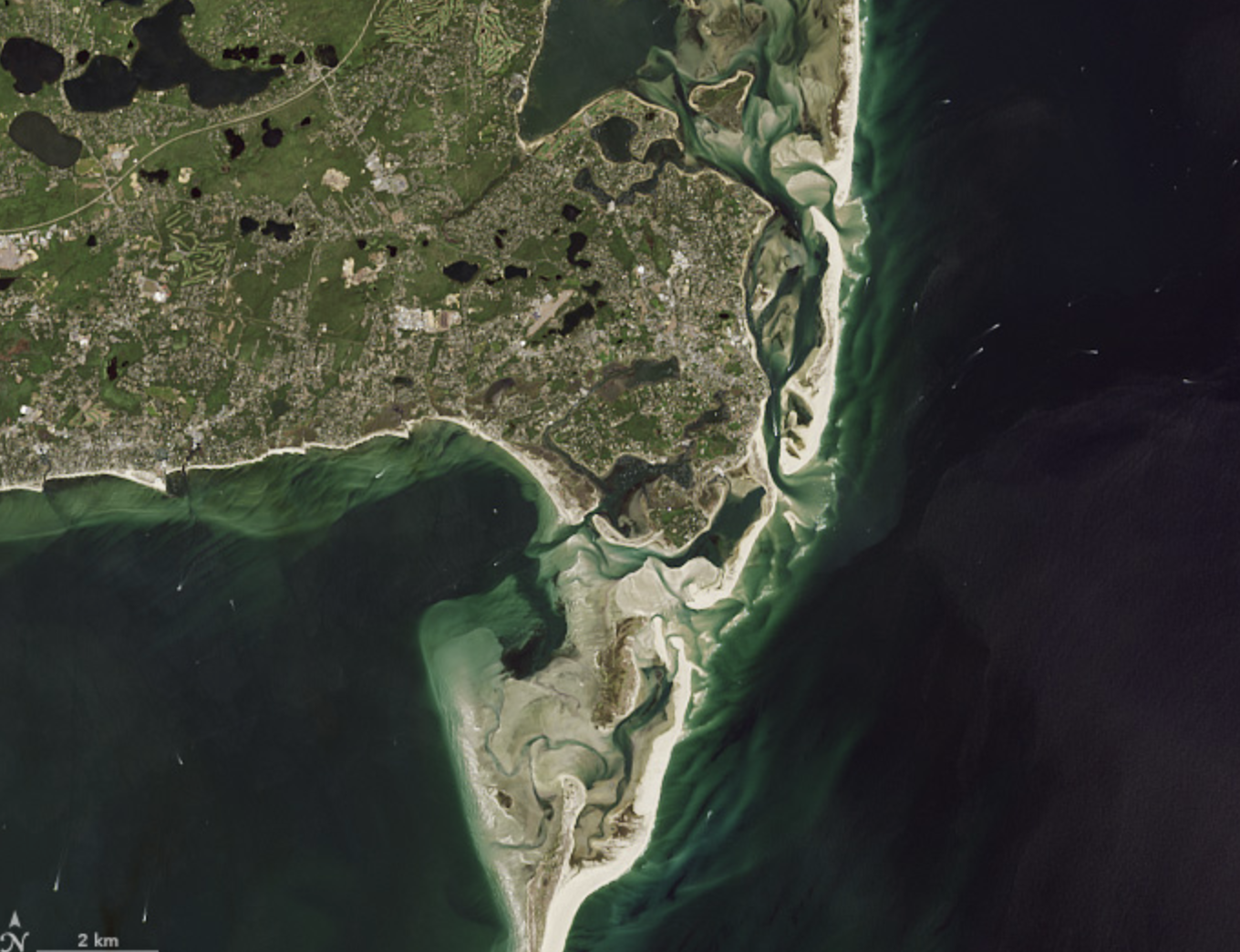 Fire Island in New York has an eroding shoreline. Over the years, waves have washed away much of the beach.