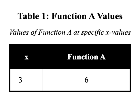 Function A is given by $f(x)=2.5x+3$. Function B is shown in the table.